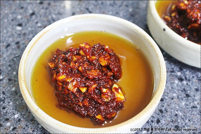 여기에 참기름을 듬뿍 따라서 먹는건데..