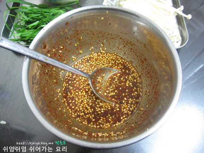 만들어둔 양념장을 넣고 살살 버무려준다.