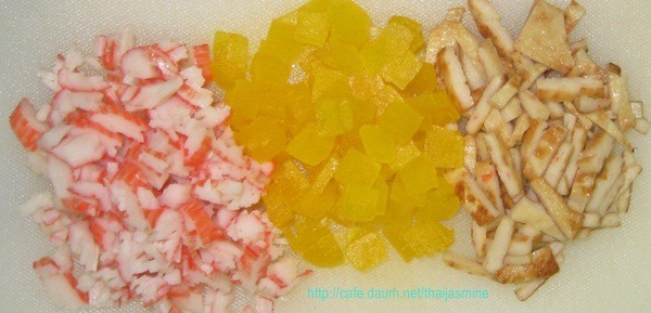 맛살 단무지 오뎅은 잘게 썰어주세요.