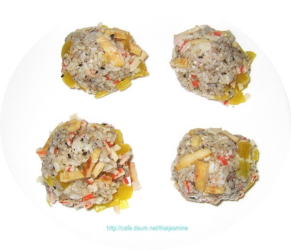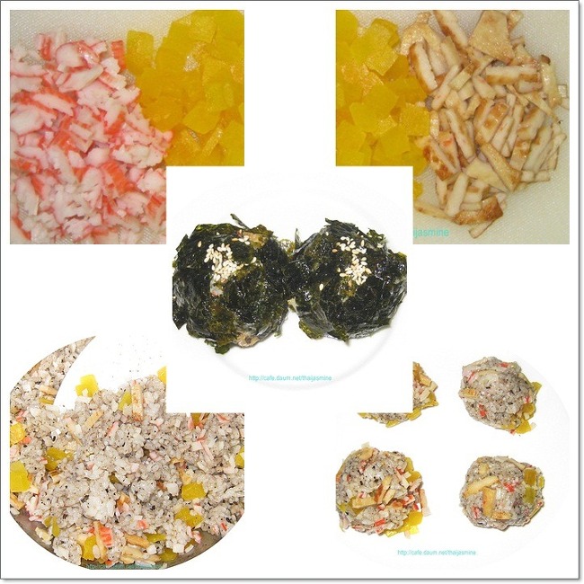 김밥을 싸고 남은 재료를 가지고 주먹밥을 만들어 봤습니다.