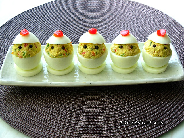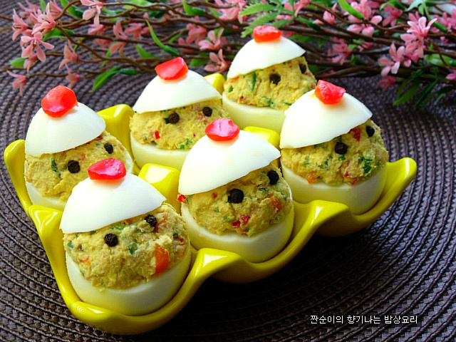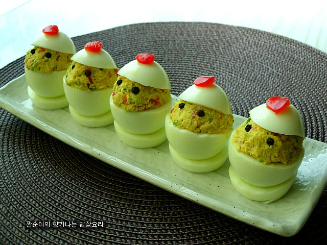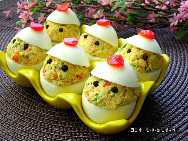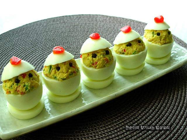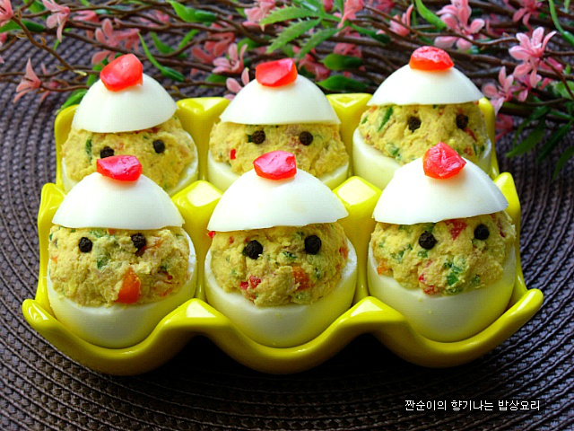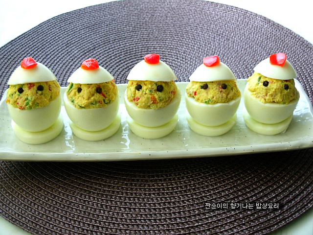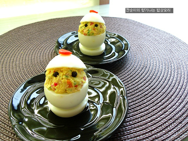 속파낸 흰자에 위의 샐러드로 속을 예쁘게 채워주고