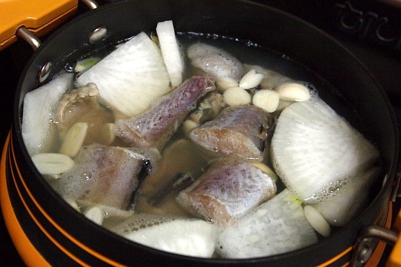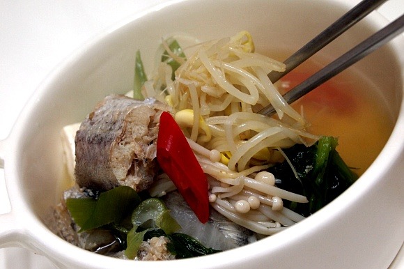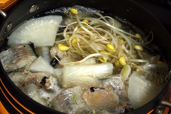 코다리탕 : 조미료대용육수(건다시마.건멸치.건북어.건표고.건새우).코다리.마늘.무우.콩나물.소금.두부.쑥갓.팽이버섯.대파.청.홍고추