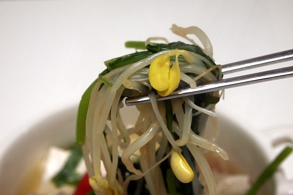 콩나물의 아삭한 식감"과 쑥갓의 개운한 뒷맛"이 입안에 퍼집니다.