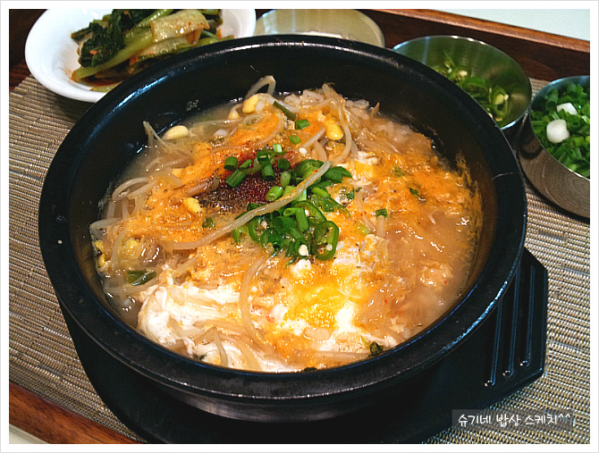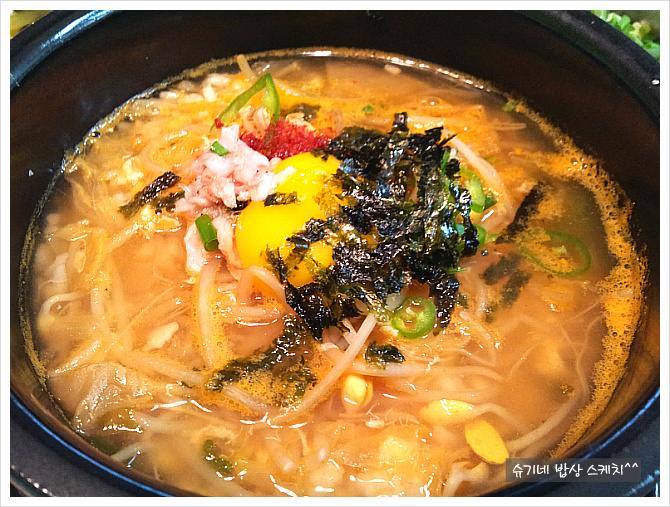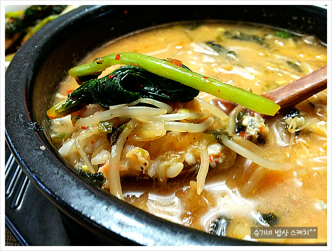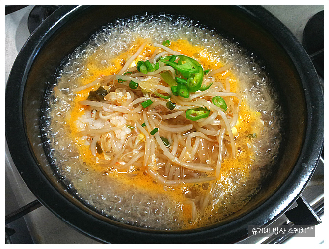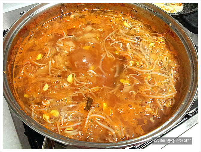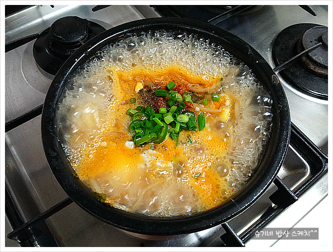 우리집 회장님이 어제 과음을 하신 관계로 얼큰을 강조하길래 저는 고추가루도 쪼끔 추가햇슴다.-;