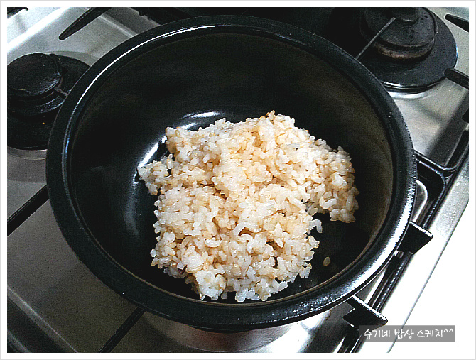 하지만 지는 국밥을 끓일 것이라 뚝배기에 밥을 담아 불에 올려줬습니다^^