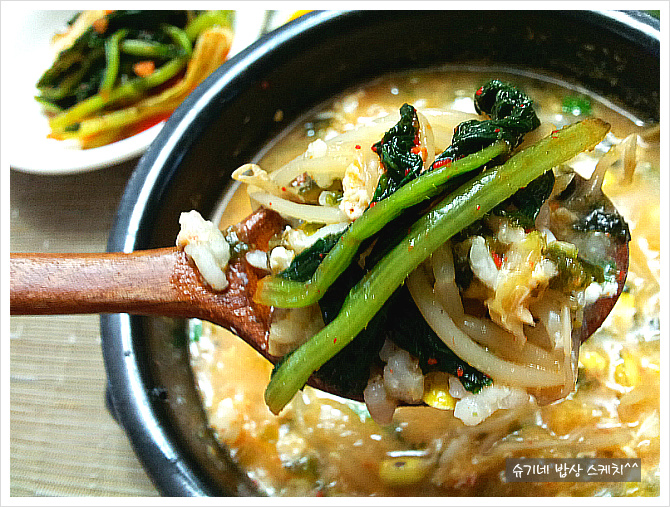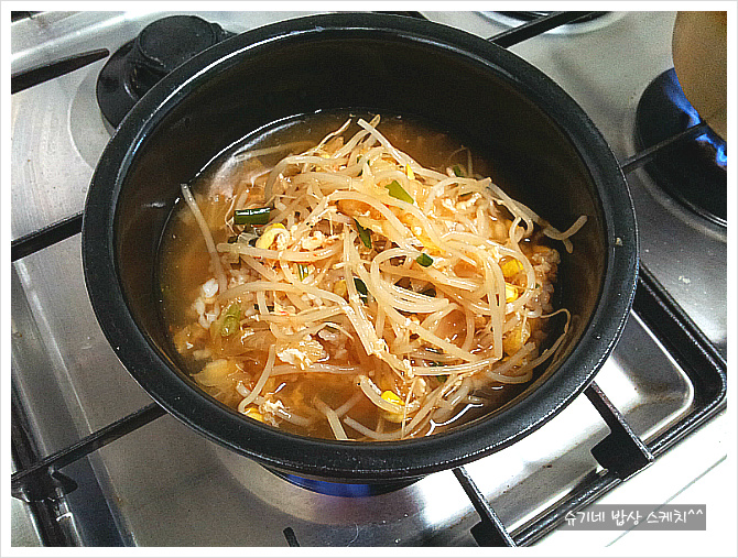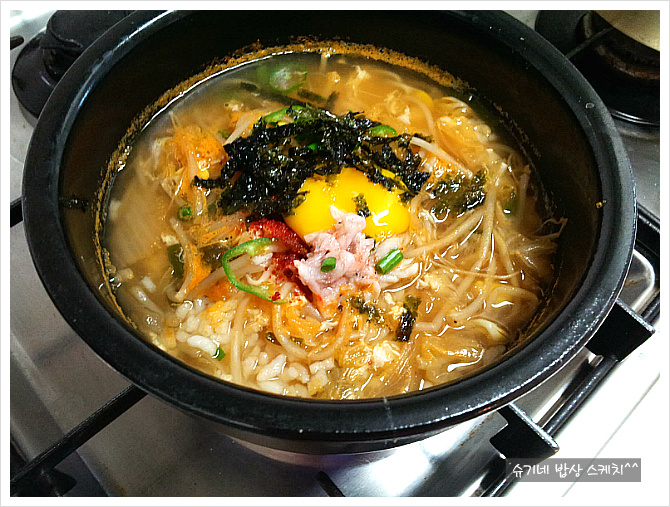 어제 끓여논 김칫국으로 콩나물 국밥 한뚝배기 했습니다~!^^