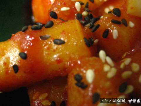 매운양념에 조려진 떡볶이떡