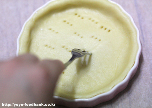 파이지 바닥에 포크로 구멍을 뿅뿅 내어준후..