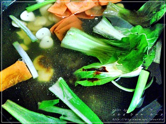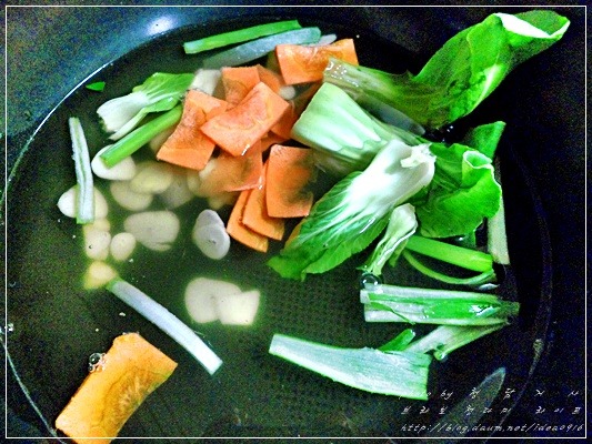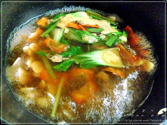 끓어오르면 당근과 청경채도 넣어주시고...