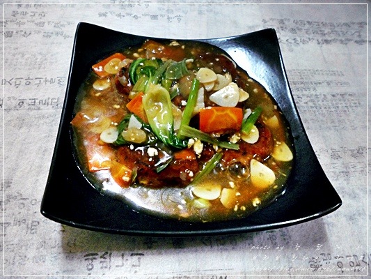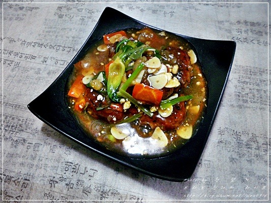 소스를 뿌려주면 참치캔으로 만든 난자완스 완성~