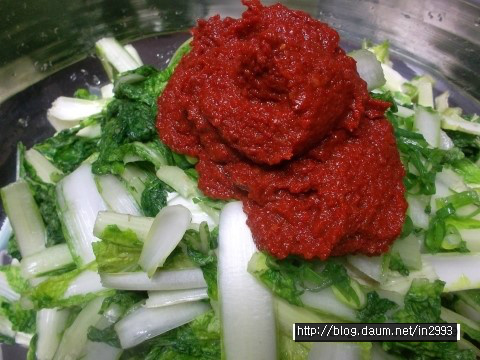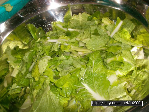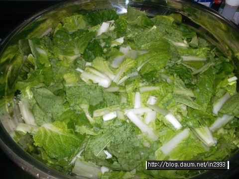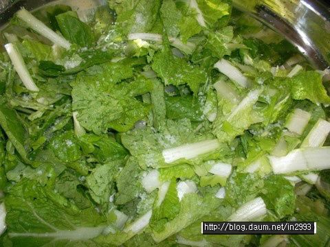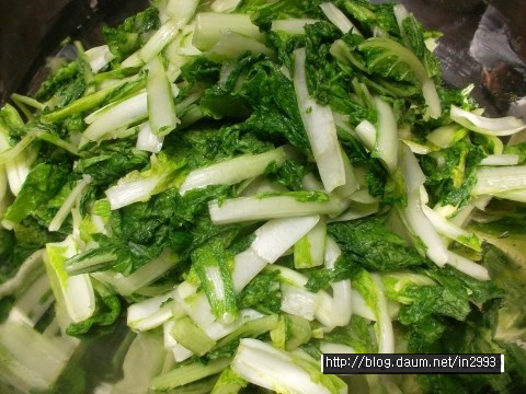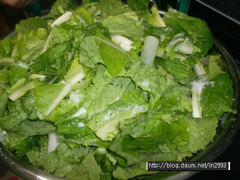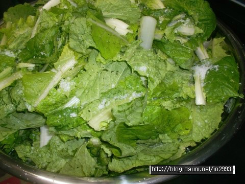 흰대는 싱겁고 푸른잎은 간간하므로 공평하게 둘다 간봐야되여 ㅎㅎㅎ
