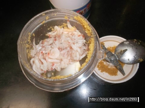 마늘 10개, 생강 엄지손톰만큼, 새우젓 듬뿍 2스푼, 양파 1/2개, 찬밥 한스푼 갈아주구요~