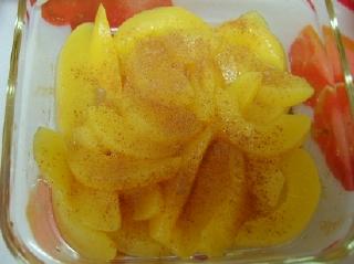 황도 4쪽, 시나몬가루 약간, 박력분 1컵(200ml), 무염버터 45그램, 황도캔 국물 3큰술, 설탕 2큰술..