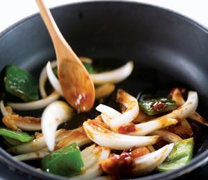 피망과 청경채 등의 파란 야채는 너무 오래 볶으면 색이 누렇게 변하므로 센 불에서 단시간에 볶는다.