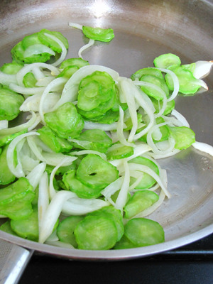 오이와 양파 절인것을... 먼저 1~2분정도 볶기 시작합니다...