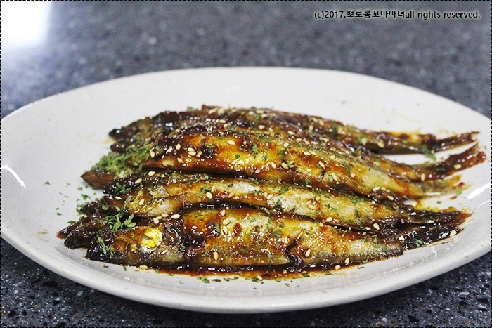 다 졸여진 열빙어는 그릇에 담아내면 완성이에요.