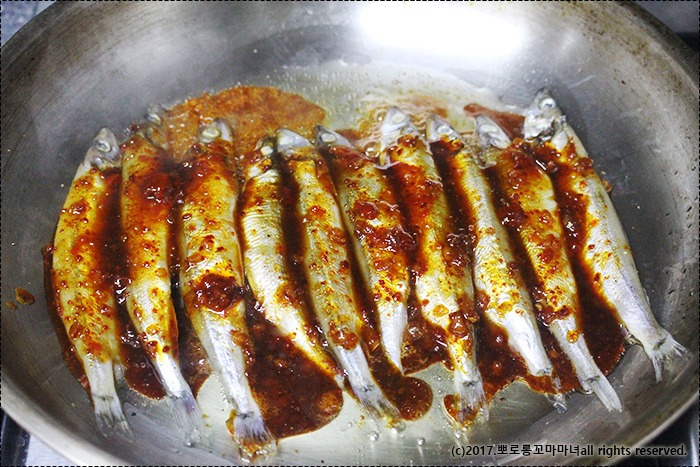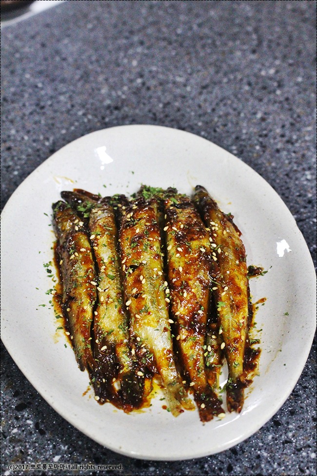 양념장을 올려주고~(다는 아니에요. 그냥 열빙어의 양에 따라 달라집니다)