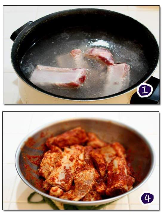 1) 등갈비는 찬물에 담구어 핏물을 뺀다.