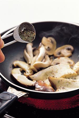 6. 버섯이 거의 익으면 마른 허브가루를 섞은 소금을 솔솔 뿌려 간한다.