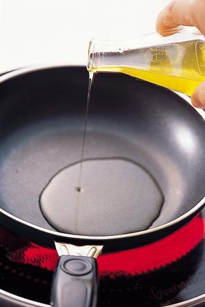 4. 달군 팬에 올리브오일을 듬뿍 뿌린다. 기름의 향이 너무 진하면 버섯 특유의 향을 즐길 수 없으므로 주의.
