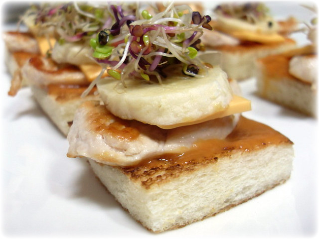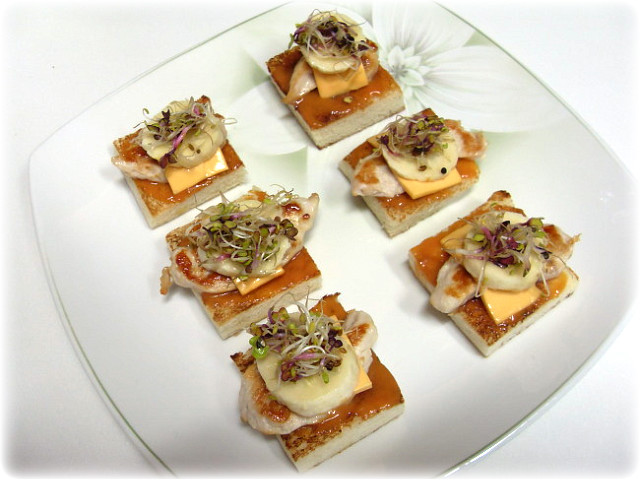 닭가슴살 / 식빵 / 슬라이스 치즈 / 바나나 / 새싹 / 머스타드소스 / 캐찹