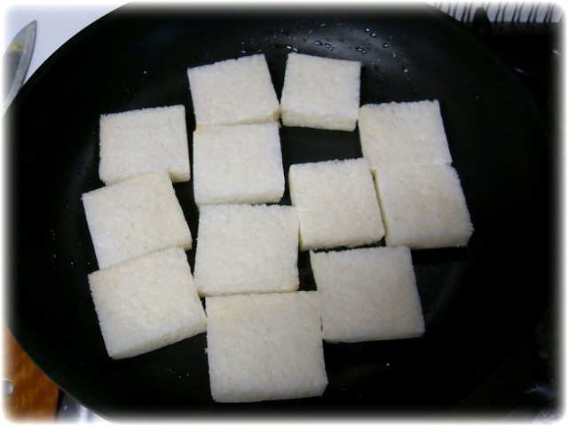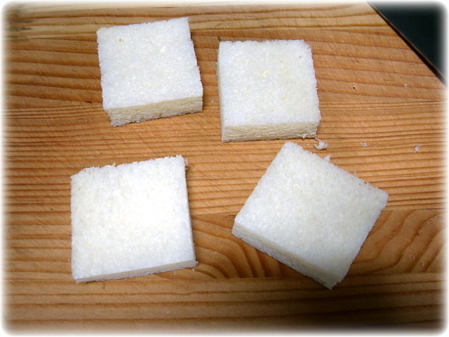 먼저 식빵의 태두리를 다 잘라낸뒤 알맞은 크기로 잘라줍니다.