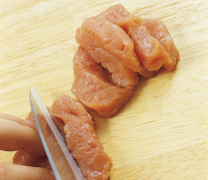 돼지고기는 결 반대 방향으로 굵직하게 썬다.
