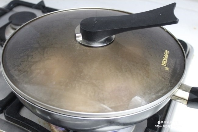 다시 냄비에 물을 넉넉히 부어 돼지고기와 함께 끓여줍니다