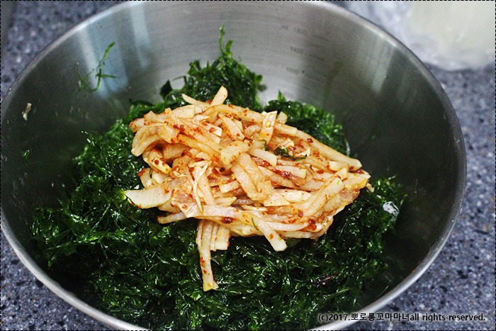 물기 뺀 감태는 가위로 잘 잘라주고 나서~