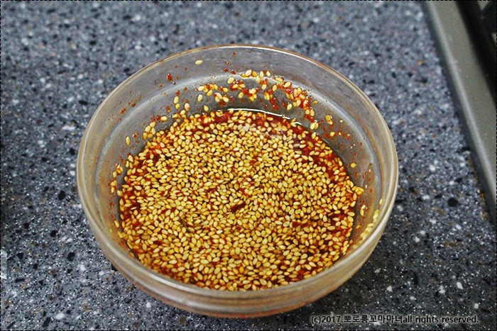 양념장 : 액젓 3큰술, 비정제설탕 2큰술, 물3큰술, 고추가루 2큰술, 통깨적당량
