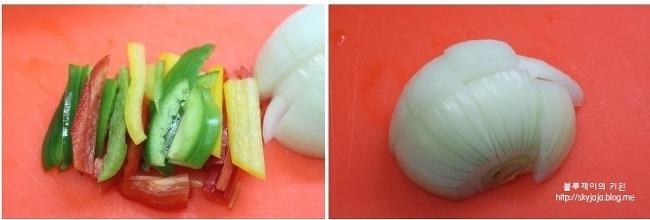 돼지고기(안심부위) 400g, 파프리카, 양파,