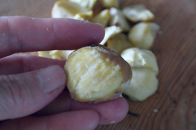 요리에 사용할 때는 2분 정도만 돌려 껍질만 벗겨 사용하면 밤 모양을 그대로 사용할 수 있습니다.