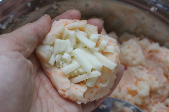 04. 감자를 뭉친후 모짜렐라 치즈도 안에 넣어