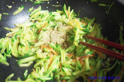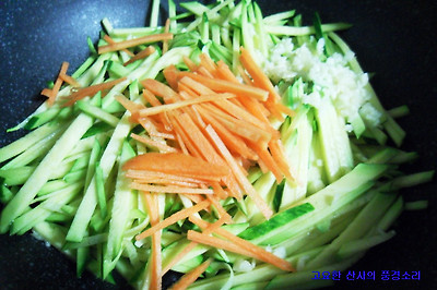 ㉠ 호박과 당근은 곱게 채썰어준다.