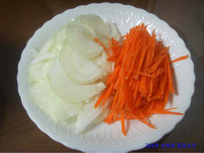 고추가루 3숟가락, 간마늘 약간, 양파 1개, 당근