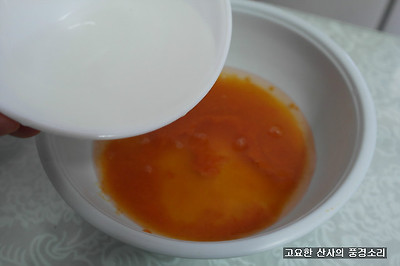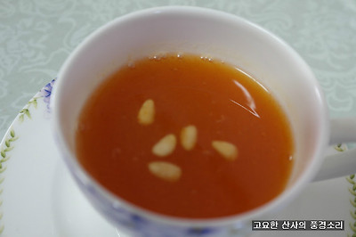 ㉢ ㉠과 ㉡를 섞어 그릇에 담아 잣을 띄워낸다.