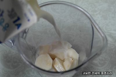 ㉡ 우유와 꿀을 넣어 믹스기에 갈아주면 완성된다.