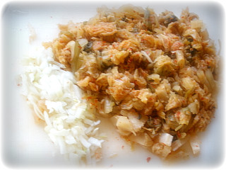 2. 김치를 송송 썰고 양파도 잘게 다진다