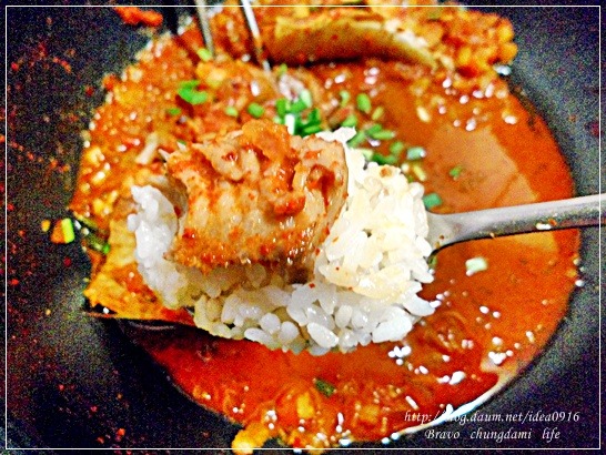 뜨끈한 밥위에 살덩이를 올려 입크게 벌려 넣어주면...
