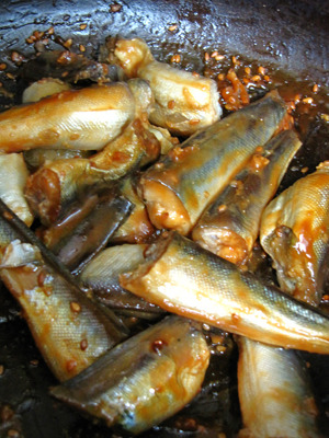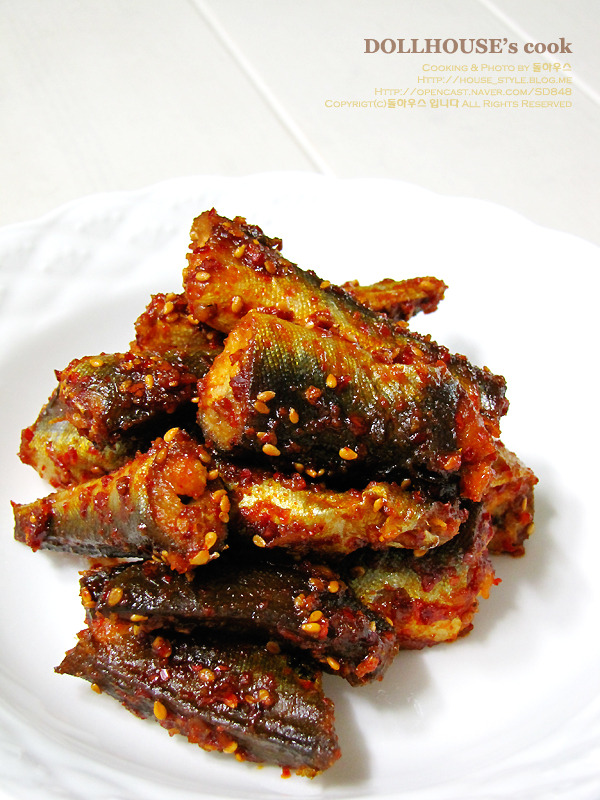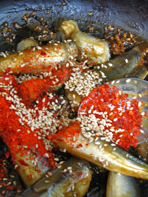양념장이 자작하게 쪼려지고.. 양미리살이 하얗게 익었으면...