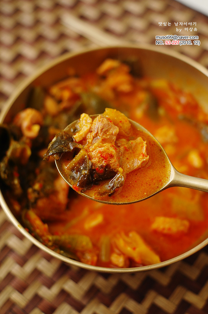 양념: 다진 마늘 1큰술, 다진 생강 1작은술, 고춧가루 4큰술, 된장 1큰술, 국간장 2큰술,