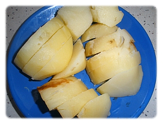 1. 삶은 감자를 먹기좋은 크기로 썬다