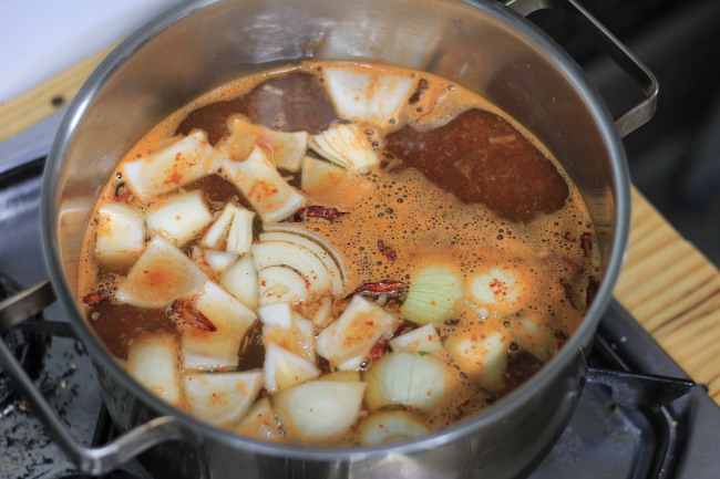 그 대신 고춧가루와 함께 베트남 고추를 넣어서 얼큰한 맛을 살려 줄 생각이에요.