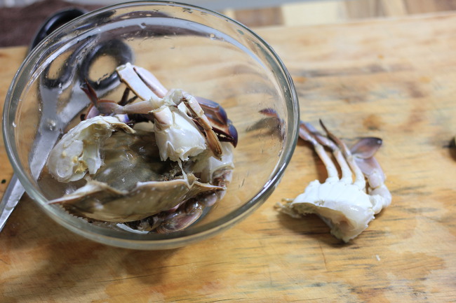 그리고 등껍질을 벗긴 다음 아가미와 입 주변에 붙어 있는