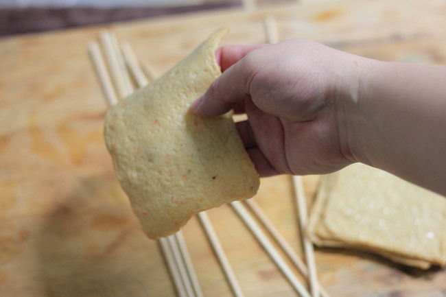 지그재그로 꼬치에 꽂아 줍니다.