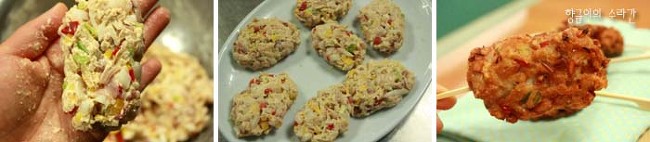 요사진은 향금이가 재료를 곱게 다지지 않고 굵게 다졌더니 재료가 훤히 보이는 사진입니다.