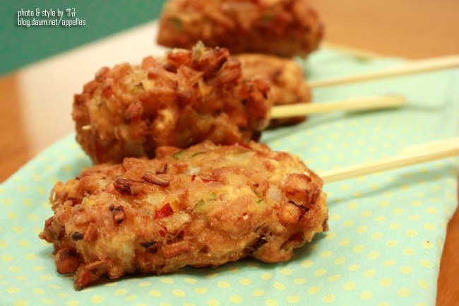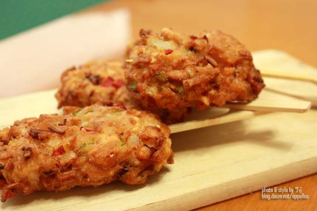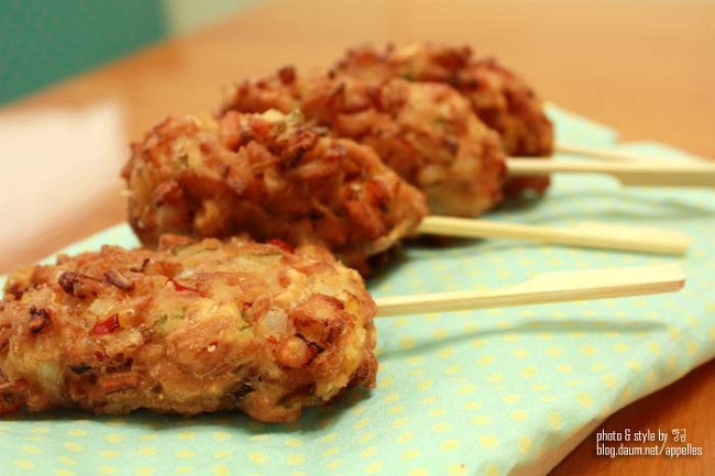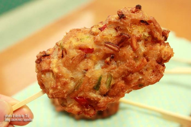 6. 튀긴핫바를 막대에 꽂아주면 끝.