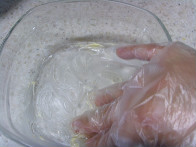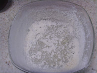 전자랜지 사용할수 있는 유리그릇에 버터를 조금 바르고 그위에 밀가루를 뿌려 잘 털어주세요~
