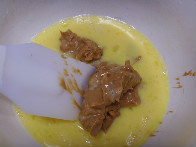 어느정도 설탕이 녹았으면 피넛버터를 넣고 거품기로 잘 풇어주세요.