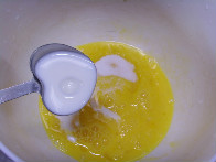 계란은 알끈을 제거하고 설탕과 우유를 넣고 잘 저어주세요.